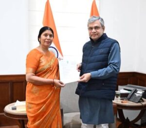 बांदा। चित्रकूट बांदा सांसद कृष्णा पटेल ने धार्मिक और पर्यटन विकास के प्रति अंगड़ाई ली है। उन्होंने रेल मंत्री अश्विनी वैश्णव से मुलाकात कर बुंदेलखंड की रेलवे समस्याओं का समाधान करने की मांग की है। उन्होंने रेल मंत्री को एक पत्र सौंपा, जिसमें बुंदेलखंड की रेलवे समस्याओं का उल्लेख किया है। समाधान की मांग की है।
