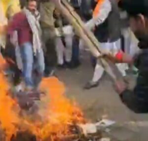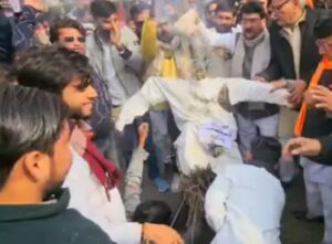 बांग्लादेश में हिंदुओं पर कथित अत्याचारों के विरोध में हिंदूवादी संगठनों प्रदर्शन: फूंका पुतला