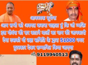 बांदा में बछड़े का कटा सिर मिलने पर नया मोड़, 51 हजार इनाम घोषित।