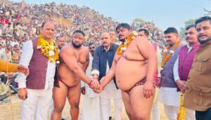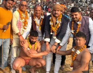 बांदा। सदर विधानसभा क्षेत्र के ग्राम गिरवां के मजरा पतरहा में भारतीय जनता पार्टी के मंडल अध्यक्ष प्रेम स्वरूप द्विवेदी के नेतृत्व में शुक्रवार को एक भव्य कुश्ती दंगल का आयोजन किया गया। कार्यक्रम में मुख्य अतिथि के रूप में पहुँचे विधायक प्रकाश दिवेदी ने पारंपरिक खेल कुश्ती को भारतीय सांस्कृतिक और खेल विरासत का अहम हिस्सा बताया।