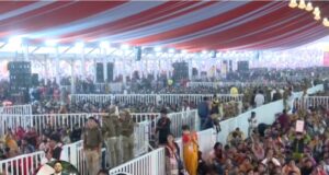बांदा। बागेश्वर धाम सरकार की हनुमंत कथा के चौथे दिन धीरेन्द्र शास्त्री नें हनुमान जी की भक्ति, राम नाम के महत्व और भक्तों के जीवन में उनके प्रभाव पर जोर दिया। साधकों को भगवान के करीब लाने और सांसारिक कष्टों से मुक्ति दिलाने के लिए हनुमान जी की कृपा का वर्णन किया। कहा ढोंग सें नहीं ढंग सें जिओगें तो ईश्वरीय कृपा बरसेगी।