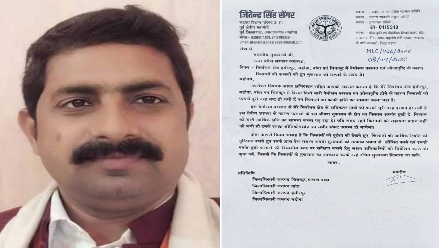 ओलावृष्टि और बेमौसम बारिश से तबाह फसलें: जितेन्द्र सिंह सेंगर ने मुख्यमंत्री से की राहत की मांग