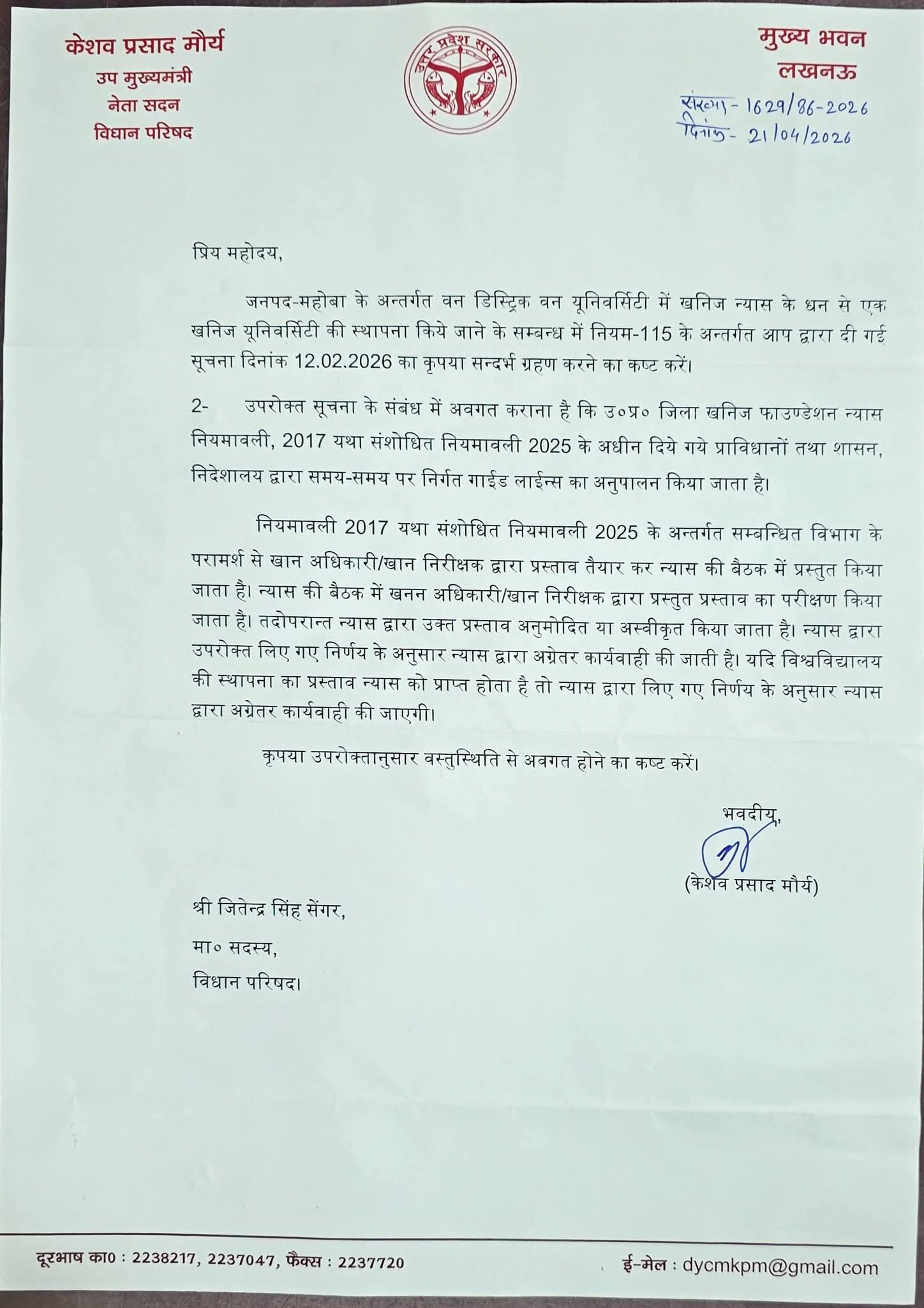इस पहल के पीछे प्रमुख भूमिका एमएलसी जितेंद्र सिंह सेंगर की मानी जा रही है। उन्होंने हाल ही में बजट सत्र के दौरान सदन में इस मुद्दे को जोर-शोर से उठाया था और महोबा में खनिज यूनिवर्सिटी की आवश्यकता पर जोर दिया था। उनके इस प्रयास को सरकार ने गंभीरता से लेते हुए आगे की कार्रवाई शुरू कर दी है।