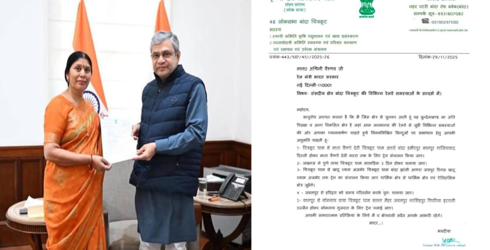सांसद कृष्णा नें क्षेत्र में रेल विकास के लिये ली अंगड़ाई: रेल मंत्री से भेंट कर सौंपा मांग पत्र।